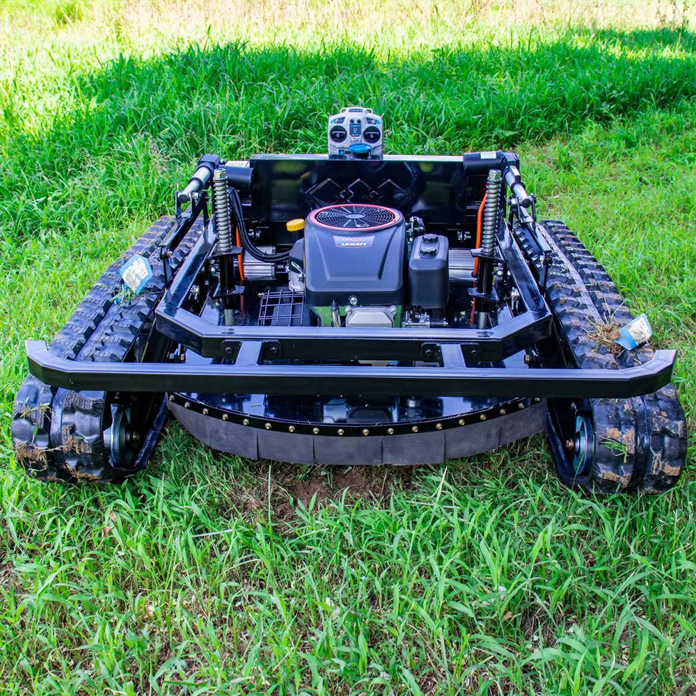 This robust remote-controlled smart lawnmower is built for tough jobs, ideal for weeds, slopes, orchards, and large lawns. With a powerful LONNIN 4-stroke engine (452cc/608cc), electric crawler drive, and 45° slope capability, it handles uneven terrain with ease. Operate safely from up to 680m away, adjust cutting height from 30mm to 200mm, and enjoy reliable self-charging performance. Perfect for professional landscaping and agricultural maintenance!