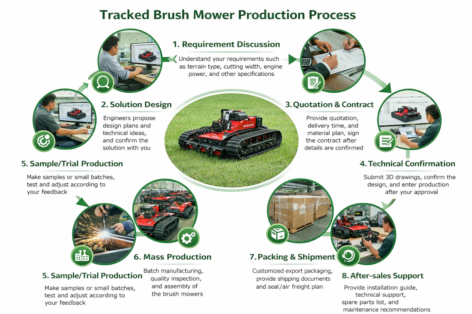 ● Tracked Chassis Design The tracked structure provides better grip, stability, and smooth operation on slopes, soft land, and uneven ground.